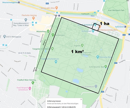 Zwischen einem Quadratmeter und einem Quadratkilometer gibt es noch zwei Einheiten: